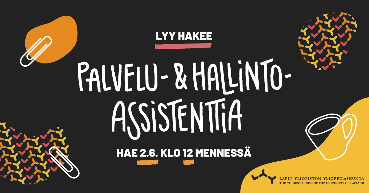 Palvelu- ja hallintoassistentin tehtävänä on hoitaa LYYn jäsenpalveluita muun muassa Lapin yliopiston F-siiven palvelupisteellä ja sähköpostitse. Palvelutehtävien lisäksi hallintoassistentti auttaa LYYn hallinnollisissa tehtävissä esimerkiksi laskutuksen osalta. Lisäksi tehtäviin kuuluu LYYn muita yleisiä tehtäviä kuten tapahtumatuotantoa. Palvelu- ja hallintoassistentti toimii siis sekä iloisessa asiakasrajapinnassa että byrokratian mielenkiintoisissa kiemuroissa!